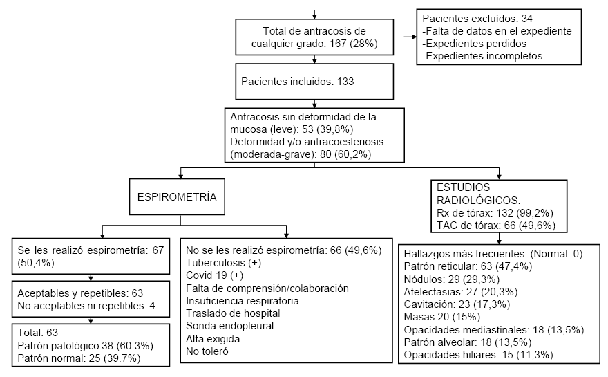 Criterios de exclusión: pacientes sin antracosis en broncoscopia. Falta de datos principales en los expedientes.