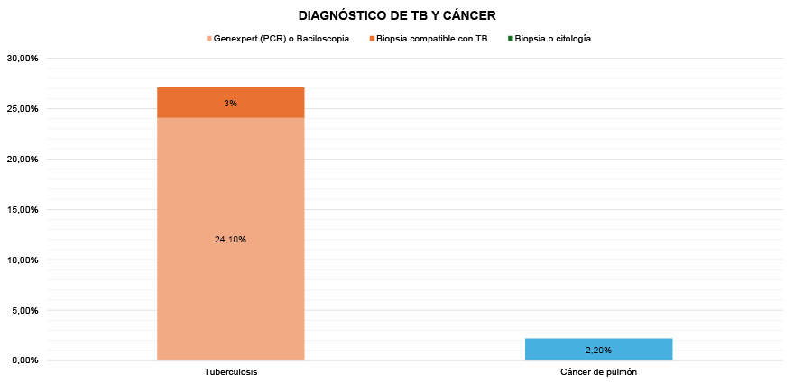 Diagnóstico de tuberculosis y cáncer de pulmón. N = 133
