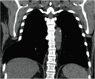 La tomografía es la imagen de elección, permite evidenciar la protrusión del pulmón a través de la pared torácica y la adecuada caracterización del contenido herniario, evalúa su tamaño y localización precisa. No existen estudios que evalúen su sensibilidad y especificidad. La administración de contraste intravenoso permite visualizar la vascularización del pulmón herniado para excluir o confirmar la estrangulación del parénquima.27 El estudio con espiración o durante maniobra de valsalva puede demostrar hernias pulmonares aparentemente ocultas y posibles complicaciones asociadas.28,29